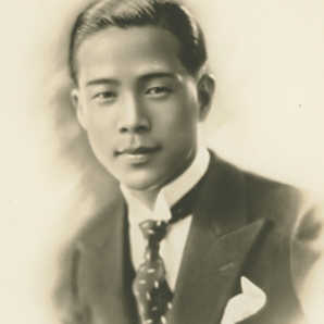 藤山一郎の芸名で日本コロムビアからデビュー。冬休みを含み一ヵ月の停学処分、 以後在学中、一切のレコード吹込みは止める